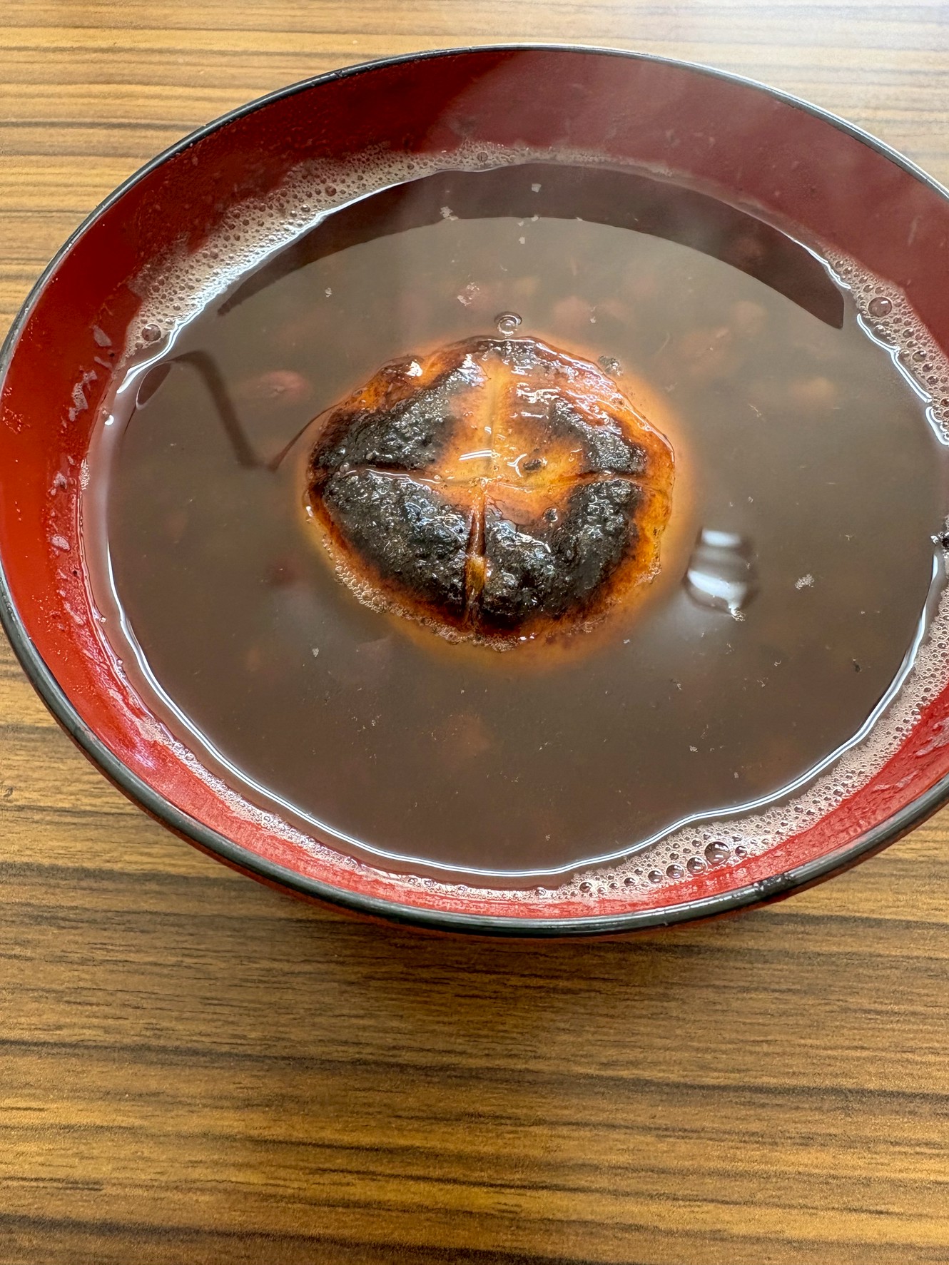 🎍仕事始めからの鏡開き。お餅が焦げ焦げですが、あったかいぜんざいが沁みます。